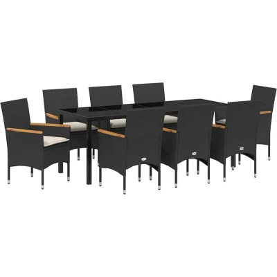 vidaXL Garden Dining Set with Cushion 9 pcs Black Poly Rattan