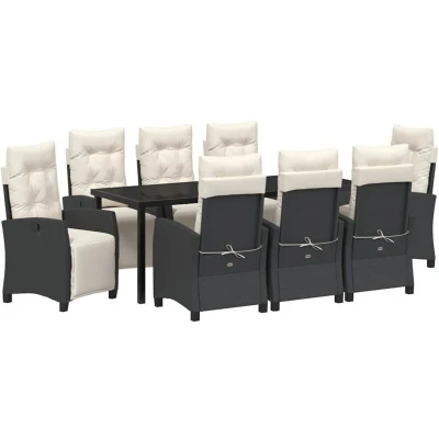 vidaXL Garden Dining Set with Cushion 9 pcs Black Poly Rattan