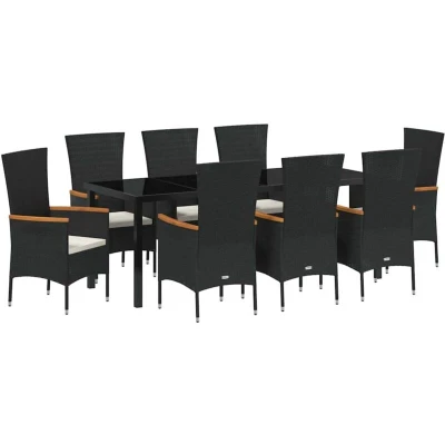 vidaXL Garden Dining Set with Cushion 9 pcs Black Powder Coated Steel