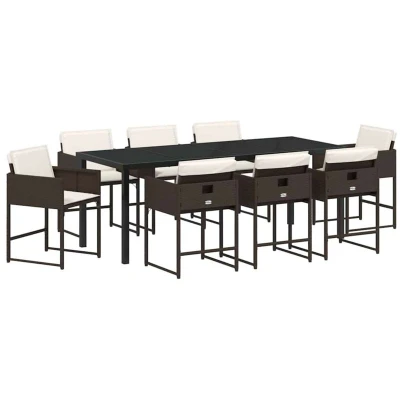 vidaXL Garden Dining Set with Cushion 9 pcs Brown Poly Rattan