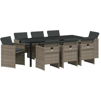 vidaXL Garden Dining Set with Cushion 9 pcs Grey Poly Rattan