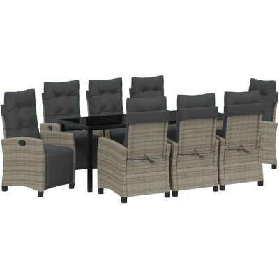 vidaXL Garden Dining Set with Cushion 9 pcs Grey Poly Rattan