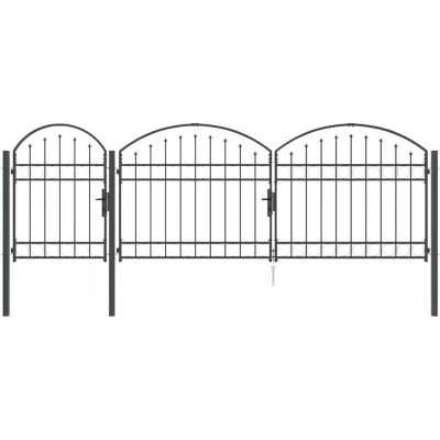 ManoManoGeneral description This durable garden fence gate with an arched top showcases a modern style blending simplicity with functionality, perfect for outdoor spaces like gardens and terraces. Crafted from smooth, water-resistant steel, this gate offers an elegant appearance while enhancing security in your garden area. The sleek design complements contemporary landscapes, allowing it to serve both decorative and practical purposes. Technical specifications Colour: Grey Material: Steel Overall dimensions: 400 x 175 cm (W x H) Weight: 47 kg Durable construction Includes 3 posts Lockable feature Arched top design Indoor / outdoor: Outdoor use only Delivery contains: 1 x Garden fence gate, 1 x Gate drop rod Assembly required: Yes SKU: 42008954 EAN: 8721359466683 Installation The gate comes with three sturdy posts that provide essential support and stability. While assembly is required, a drill is the only necessary tool, allowing for a straightforward installation process fitting your garden
