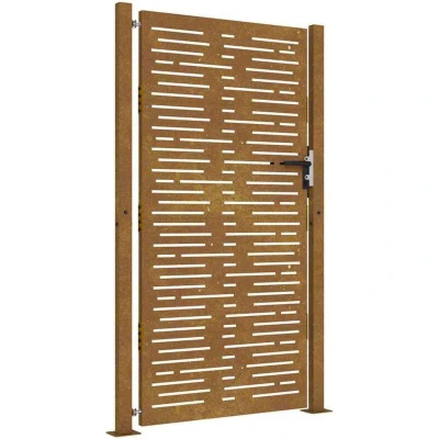 This garden gate, featuring a perfect combination of strength and elegance, makes an ideal entry point for the fence around your garden or patio. Durable material: The metal gate is made of corten steel. Corten steel, also known as weathering steel. This is anti-corrosive by its very nature. It develops a rusty protective layer against corrosion when first exposed to atmospheric conditions. Thus, you don't need to paint it. This can help you save on maintenance and repair costs. The distinctive brown colour on the corten steel will surely be an eye-catcher. Finally, weathering steel is exceptionally durable and will stand up to the test of time. Laser-cut design: The side gate has a beautiful laser-cut design that adds a special charm to your home.Lockable system: The steel gate is equipped with a lockable system for extra security.Stable base: The 4 mounting holes in the base of the gate post allow you to fix it to the ground for added stability. Good to know:This product should be assembled.The gate frame is not included in the delivery.This product is not rusted yet and has a normal metal colour when you receive it, but rust will develop over time. You could speed up the rusting process by spraying it with soap water and salt water. To keep your clothes stain-free, avoid contact with the developing rust layer.