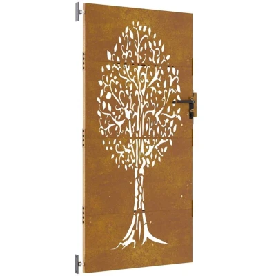 vidaXL Garden Gate 85x200 cm Corten Steel Tree Design