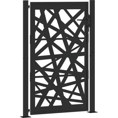 ManoManoGeneral description This garden gate, featuring a perfect combination of strength and elegance, makes an ideal entry point for the fence around your garden or patio. It is designed to enhance garden entrances, driveways, and property boundaries, combining functionality and visual appeal. Technical specifications Colour: Black Material: Weathering steel Overall dimensions: 110 x 10 x 155 cm (W x D x H) Gate panel size: 85 x 100 cm (W x H) Post tube size: 6 x 4 cm (W x D) Post height: 155 cm Flange plate size: 12 x 10 cm (W x D) Lockable system with 3 keys Assembly required: Yes Installation The entrance gate comes complete with two posts with flange plates and mounting accessories for easy installation. Usage Perfect for enhancing garden entrances, driveways, and any property boundaries. Other information