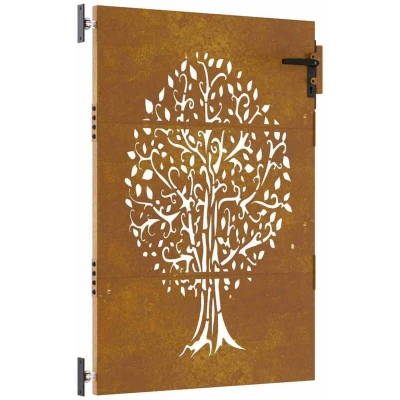 vidaXL Garden Gate, Driveway Gate for Patio Terrace Balcony Yard, Fence with Lock and Handle, Panel, 85x125 cm Corten Steel Tree Design