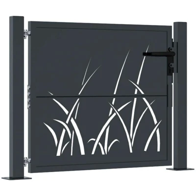 vidaXL Garden Gate, Driveway Gate for Terrace Balcony Yard, Fence with Lock and Handle, Panel, 105x105 cm Anthracite Steel Grass Design