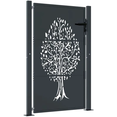vidaXL Garden Gate, Driveway Gate for Terrace Balcony Yard, Fence with Lock and Handle, Panel, 105x130 cm Anthracite Steel Tree Design