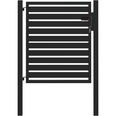 This garden gate, featuring a perfect combination of strength and elegance, makes an ideal entry point for the fence around your garden or patio. Durable material: The garden gate is made of powder-coated aluminium, offering long-lasting durability, weather resistance, and resistance to rust, corrosion, and wear. Sturdy and stable structure: The bottom of the metal garden gate posts is designed with an approximately 40 cm gap, allowing for secure installation into the ground to ensure stability. Lockable design: The gate comes with a set of locks and handles, providing enhanced security and convenience. Wide applications: The gate's simple and elegant design makes it suitable for a variety of garden styles and landscapes, from contemporary to classic settings. Colour: Black Material: Aluminium Overall size: 100 x 141 cm (W x H) Gate panel size: 81 x 100 cm (W x H) Post tube size: 6 x 6 cm (W x D) A set of lock and handle included Assembly required: Yes SKU: 42004146 EU responsible