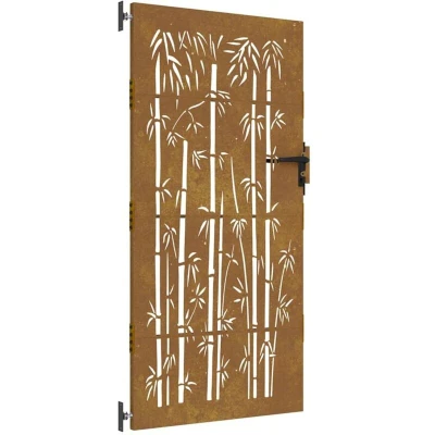 vidaXL Garden Gate with Lockable System and Rusty Finish Laser Cut Bamboo Pattern Corten Steel for Patio 85x175 cm