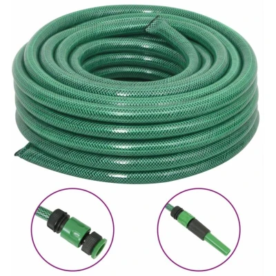 vidaXL Garden Hose with Fitting Set Green 0.75" 30 m PVC