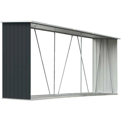 VidaXLThis log storage shed presents a great storage solution for firewood. It has a stable construction with steel support bars and extra tubes on both sides. As it is made of galvanised steel, the firewood storage shed requires minimal maintenance and is very durable. This log store includes a steel floor frame for added stability and raised floor slats to keep the logs ventilated and dry. Rainwater will automatically be drained from the roof thanks to its sloping design. Our firewood shed is easy to assemble. Keep your fire logs organised, stacked and aired with this solid and compact log storage shed! Good to know:To prevent damage from heavy snow buildup, we recommend clearing the roof regularly during winter.