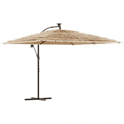 vidaXL Garden Parasol with LEDs and Steel Pole Brown 290x290x238 cm