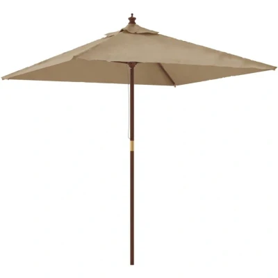This garden parasol is perfect for creating some shade and protecting you from the sun's harmful UV rays. Durable material: Made of UV-protective and anti-fade polyester, the parasol provides you with optimum protection against the sun and is easy to clean. Stable frame: The strong hardwood pole with durable ribs makes the garden umbrella very stable and durable. Wind Vent: The extra piece of fabric at the top of the umbrella allows wind and heat venting, making the parasol a wonderful choice for outdoor living. Easy-to-operate: The outdoor parasol can be easily opened and closed thanks to the single pulley system. Note: This product is not 100% waterproof. We recommend treating this product with a waterproof spray for better water resistance. Colour: Taupe Frame material: Solid hardwood with teak colour, laminated bamboo Cover material: Fabric (100% polyester) Overall dimensions: 198 x 198 x 231 cm (W x D x H) Pole diameter: 38 mm With the air vent Including 4 ribs Features single