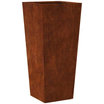 ManoManoGeneral description This garden planter is an excellent choice for displaying your favorite plants or flowers, enhancing the beauty of your gardens, balconies, or patios. Made from durable weathering steel, it develops a rusty protective layer against corrosion when exposed to the elements, eliminating the need for painting and reducing maintenance costs. Its distinctive brown color adds a unique touch to your outdoor space. Technical specifications Material: Weathering steel Dimensions: 35 x 35 x 75 cm (L x W x H) Opening size: 35 x 35 cm (L x W) Bottom size: 25 x 25 cm (L x W) With bottom Assembly required: Yes Usage The planter is designed to hold a large amount of soil, providing ample space for plants, vegetables, herbs, and flowers. It can be placed on any surface without fear of flooding, as it does not have drainage holes, although you can create one if needed. This planter elevates your plants, protecting them from weeds, pests, and ground-dwelling insects. Other information