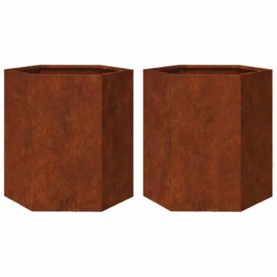vidaXL Garden Planter Patio Flower Pots Freestanding Hexagon Corten Steel 46 x 40 45 cm Set of 2 Rust Brown for Flowers, Plants, Herbs, Vegetables