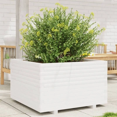 vidaXL Garden Planter White 80x80x49.5 cm Solid Wood Pine