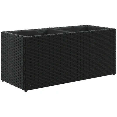 vidaXL Garden Planter with 2 Pots Black 72x30x32 cm Poly Rattan