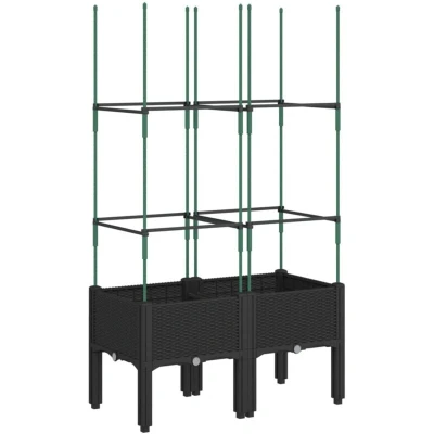 This garden planter with trellis is an excellent choice for climbing plants in your garden, patio and terrace. Durable material: Polypropylene is a popular plastic that is also one of the most used materials in outdoor furniture. It's lightweight, tough, and resistant to impact.Generous capacity: The outdoor planter provides plenty of space for growing all your vegetables, flowers and other plants.Practical design: The ideal bottom layer helps retain moisture and allows for easy drainage. Additionally, the integrated trellis offers great support for growing climbing plants such as tomatoes, peas, and roses.Beautiful rattan look: The patio planter is designed with a rattan look, bringing an elegant charm to your living space.Elevated design: The elevated design of this planter box can protect your plants from weeds and pests.