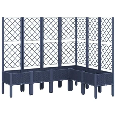 ManoManoGeneral description This garden planter with trellis is an excellent choice for climbing plants in your garden, patio, and terrace. It features a practical design that helps retain moisture while allowing for easy drainage, making it ideal for growing vegetables, flowers, and other plants. The integrated trellis provides great support for climbing plants such as tomatoes, peas, and roses, while the elevated design protects your plants from weeds and pests. Technical specifications Colour: Blue grey Material: PP (polypropylene) Overall dimensions: 160 x 120 x 142 cm (L x W x H) Height of the bottom from the ground: 20 cm Assembly required: Yes Other information