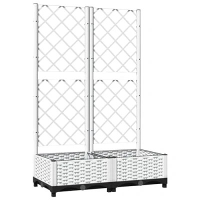 vidaXL Garden Planter with Trellis Outdoor Entrance Patio Terrace Raised Bed Flower Box Climbing Support Plant Pot White 80x40x121.5 cm PP