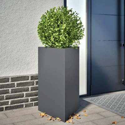 ManoManoGeneral description This garden planter is an excellent choice for showcasing your favorite plants or flowers, enhancing the aesthetic of your gardens, balconies, or patios. Its triangular design allows for creative arrangements, whether used individually or in clusters, providing a unique gardening space. Technical specifications Color: Anthracite Material: Steel Dimensions: 50 x 43 x 75 cm (L x W x H) With bottom Assembly required: Yes Usage Sturdy and durable: Made of rust-resistant steel, this planter is designed for long-term outdoor use and provides stability to prevent tipping over. Ample space: The deep design accommodates a large amount of soil, promoting healthy root growth for plants, vegetables, herbs, and flowers. Weeds and pests protection: Elevates plants to protect them from weeds, pests, and ground-dwelling insects. Versatile: The planter can stand on any surface without drainage holes, but you can easily create a hole for improved drainage if desired. Other