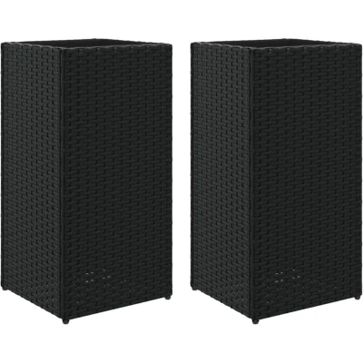 vidaXL Garden Planters 2 pcs Black 30x30x60 cm Poly Rattan