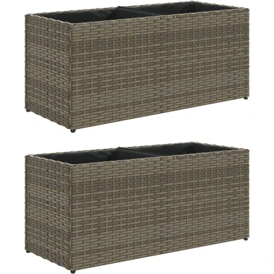 vidaXL Garden Planters with 2 Pots pcs Grey 72x30x32 cm Poly Rattan