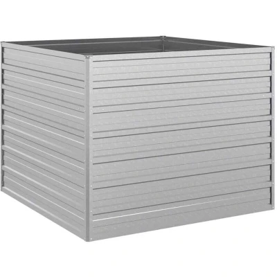vidaXL Garden Raised Bed Galvanised Steel Silver Planter for Outdoors Size 100x100x77 cm Ideal Patio, Balcony or Decor Planting Herbs, Flowers, Vegetables
