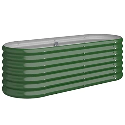 vidaXL Garden Raised Bed Green Powder Coated Steel 114x40x36 cm Sturdy, Weather Resistant Oval Flower Box for Outdoor Gardening