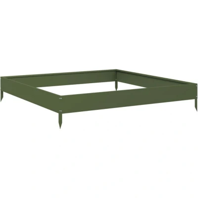 vidaXL Garden Raised Bed Outdoor Planter Pot in Olive Green Steel Flower Box 100x100x18.5cm for Flowers/Plants/Vegetables/Herbs