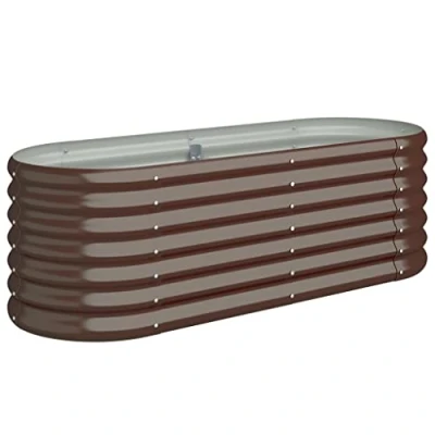 vidaXL Garden Raised Bed Powder Coated Steel Large Brown Oval Planter for Outdoor Garden, Patio, and Balcony Planting 114x40x36 cm