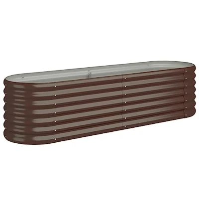 vidaXL Garden Raised Bed Powder Coated Steel Oval Planter 152x40x36 cm Brown for Outdoor, Patio, Balcony Planting Weather Resistant
