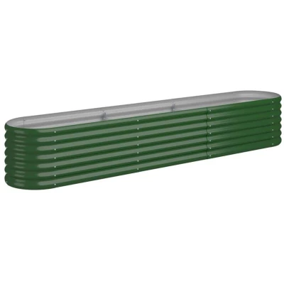 ManoManoGeneral description This garden raised bed is an excellent choice for DIY enthusiasts looking to enhance their gardens, balconies, or patios. Made from galvanised steel, it features a sturdy frame with interior support brackets, ensuring durability and stability. The powder-coated finish protects against rust and corrosion, making it suitable for outdoor use. Technical specifications Material: Galvanised steel Colour: Green Dimensions: 224 x 40 x 36 cm (L x W x H) Shape: Oval Assembly required: Yes Other information