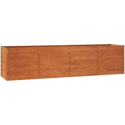 ManoManoGeneral description This weathering steel garden raised bed is an excellent choice for DIY enthusiasts looking to enhance their gardens, balconies, or patios. Made from durable Corten steel, it develops a rusty protective layer against corrosion when exposed to the elements, eliminating the need for painting and reducing maintenance costs. The distinctive brown color of the corten steel adds a unique touch to your outdoor space, while its exceptional durability ensures it will withstand the test of time. Technical specifications Material: Corten steel Dimensions: 320 x 80 x 77 cm (L x W x H) Colour: Rusty Usage The planter is deep and wide enough to hold a large amount of soil, providing ample space for plants, vegetables, herbs, and flowers. The bottomless design allows for good drainage, preventing water buildup that can cause root rot and enabling better nutrient absorption. It can be placed on soil, grass, or concrete floors. Other information This product is not rusted upon