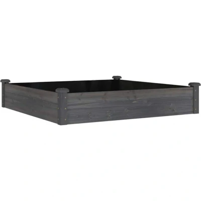 vidaXL Garden Raised Bed with Liner 120x120x25cm Grey Solid Fir Wood Open Bottom Drainage