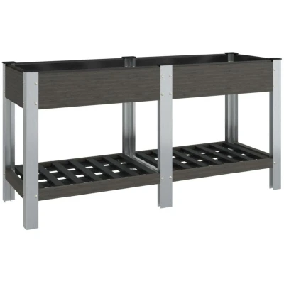 VidaXLThis handy garden raised bed is a great choice for DIY enthusiasts to decorate your gardens, balconies, or patios. Durable material: The planter is made of wood-plastic composite, which makes it durable, weather-resistant as well as suitable for outdoor use.Ample space: The raised bed provides ample space to accommodate a considerable number of plants, vegetables, herbs, and flowers. Additionally, the shelf offers extra storage space for placing various pots and tools.Great ventilation: The garden planter is designed with open bottoms, which promises great ventilation conditions for plants.Sturdy frame: The steel frame of the flower box ensures sturdiness and stability. Note:Each product comes with an assembly manual in the box for easy assembly.
