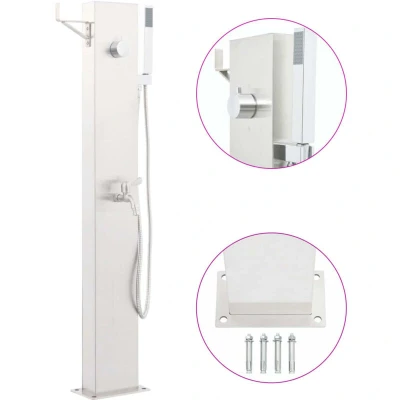 General description The Garden Shower Faucet is designed with a modern aesthetic, making it a perfect addition to your swimming pool or outdoor living space. Constructed from durable stainless steel with a brushed finish, this faucet is built to withstand the elements while providing functionality for gardening, watering, and quick showers. Technical specifications Colour: Silver Material: 201 Stainless steel with brushed finish Faucet material: 304 Stainless steel Total height: 110 cm Column size: 15 x 7 cm (L x W) Base size: 20 x 12 cm (L x W) Handheld shower size: 2.8 x 2.8 x 21 cm (W x D x H) Hose length: 150 cm Standard 1/2" plumbing connection Assembly required: Yes Mounting screws included Installation The shower tap is easy to assemble, with all necessary mounting accessories included for secure installation. Usage This garden faucet is versatile, suitable for various outdoor tasks such as: Gardening Watering plants Quick outdoor showers Other information