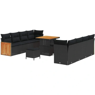 vidaXL Garden Sofa Set 11 pcs Black Poly Rattan