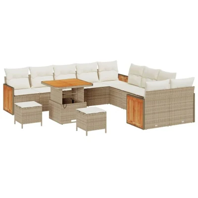 vidaXL Garden Sofa Set 13 pcs Beige and Cream Poly Rattan