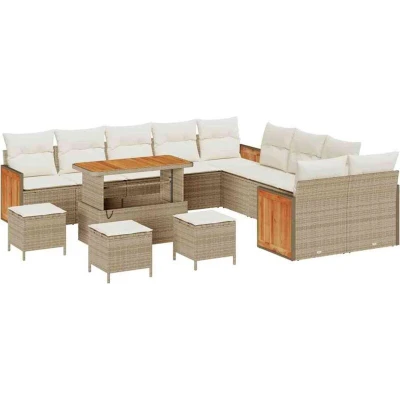 ManoManoGeneral description The Modern Garden Sofa Set features a stunning contemporary design, perfect for outdoor spaces. It strikes a balance between comfort and style, with clean lines and practical simplicity that enhances any garden or terrace. Technical specifications Materials: Poly rattan and solid acacia wood Colour: Beige and cream Overall dimensions: 110 x 55 x 71 cm (L x W x H) Weight: 65.8 kg Durable: Yes Indoor / outdoor: Outdoor only Number of items: 14 Assembly required: Yes EAN: 8721288454409 SKU: 3365321 Brand: vidaXL Included Components 5-piece outdoor sofa set Flat armrests for comfort Sturdy steel legs for solid support Modern back design for aesthetic appeal Care & Maintenance Use a cover when not in use to prolong lifespan Regularly clean with a dry cloth Can withstand various weather conditions Other information