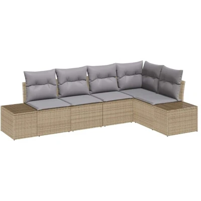 vidaXL Garden Sofa Set 5 pcs Beige Poly Rattan