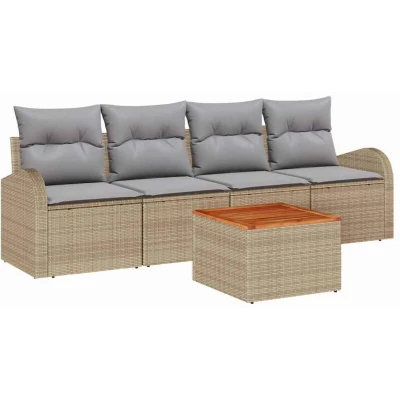Vidaxl Garden Sofa Set 5 pcs Beige Poly rattan
