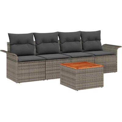 vidaXL Garden Sofa Set 5 pcs Grey Poly rattan