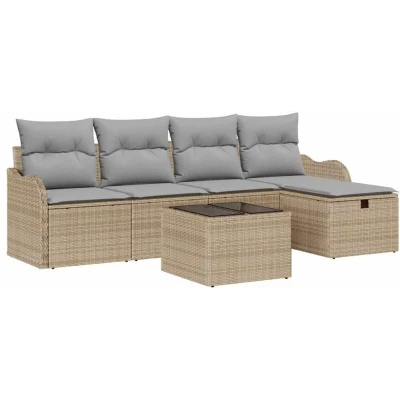 vidaXL Garden Sofa Set 6 pcs Beige and Light Grey Poly Rattan
