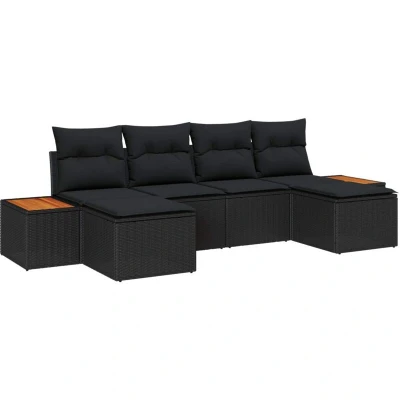 Vidaxl Garden Sofa Set 6 pcs Black 184 x 62 85 cm Poly rattan