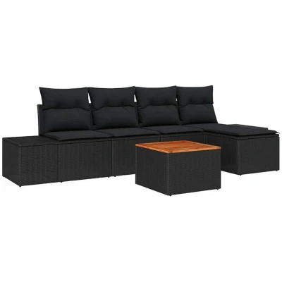 ManoManoGeneral description This trendy, adaptable furniture set is designed for enjoying the outdoors, enhancing any garden or terrace with its smart lines and multi-purpose design. Whether you’re hosting a gathering, relaxing, or dining outside, its modular design allows you to adjust it to fit any occasion or space. Technical specifications Materials: PE rattan, powder-coated steel, solid acacia wood Colour: Black Assembly required: Yes Included Components: 2 x Centre seats with storage, 2 x Sofas with storage, 1 x Footstool with storage, 1 x Garden table EAN: 8721288368874 SKU: 3356616 Recommended Uses Perfect for spring and summer activities Ideal for chilling out, alfresco dining, or social events Suitable for terraces, gardens, or any outdoor space Care & Maintenance Cover the furniture when not in use, especially during bad weather Wipe surfaces regularly to maintain their shine Store cushions indoors when not needed to prevent moisture build-up Other information