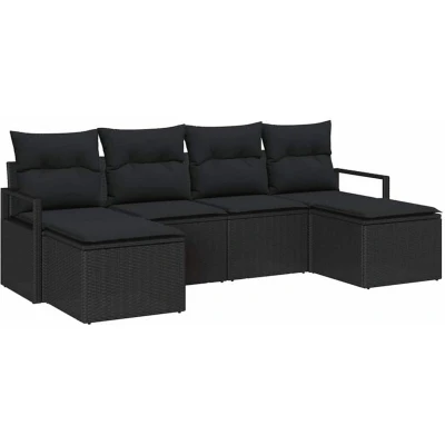 ManoManoGeneral description This Modern Rectangular Outdoor Sofa Set for 5 People is designed to enhance your outdoor space with style and practicality. Its sleek lines complement contemporary gardens and terraces, offering both comfort and an elegant appearance. Perfect for summer gatherings or relaxing evenings with family, this sofa set is sure to be the focal point of your outdoor area. It combines a sophisticated look with robust construction, creating a delightful atmosphere in any setting. Technical specifications Colour: Black Material: Poly rattan and powder-coated steel Seat width: 55 cm Seat depth: 55 cm Max weight capacity: 110 kg Assembly required: Yes Included components: 2 x Centre seat, 2 x Arm sofa, 2 x Footstool EAN: 8721288354334 SKU: 3355162 Brand: vidaXL Care & Maintenance Easy to maintain; protect from bad weather when not in use by covering it. Using a quality furniture cover will extend its lifespan and keep it looking fresh. Other information