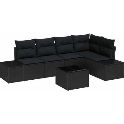vidaXL Garden Sofa Set 6 pcs Black Poly Rattan and Powder Coated Steel
